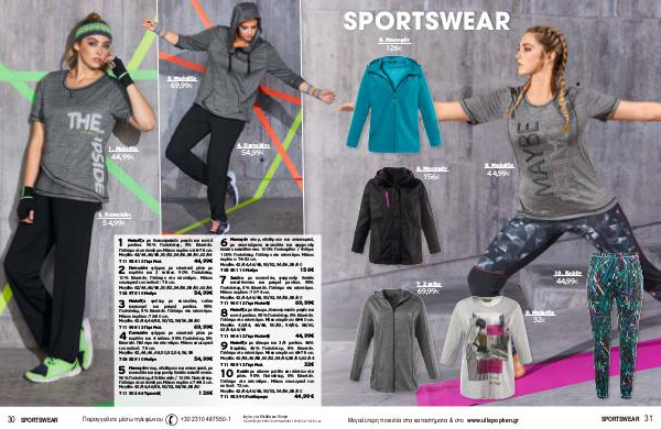 SPORTSWEAR 5. Μπουφάν 126 € 6. Μπουφάν 156 € 8. Μπλούζα 44,99 € 10. Κολάν 44,99 € 7. Ζακέτα 69,99 € 9. Μπλούζα 32 € Μεγαλύτερη ποικιλία στα καταστήματα & στο www.ullapopken.gr SPORTSWEAR 31