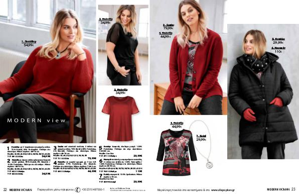 3. Σακάκι 79,99 € 4. Μπλούζα 44,99 € 5. Φουλάρι 29,99 € 6. Μπουφάν 110 € 4. Μπλούζα 44,99 € 7. Κολιέ 29,99 € Μεγαλύτερη ποικιλία στα καταστήματα & στο www.ullapopken.gr MODERN WOMAN 23