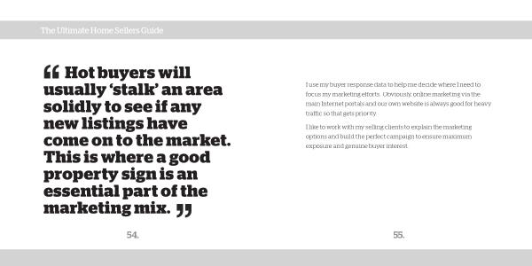Hot buyers will usually ‘ stalk ’ an area solidly to see if any new listings have come on to the market . This is where a good property sign is an essential part of the marketing mix .