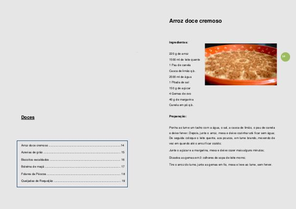 Arroz doce cremoso .......................................................................................14
