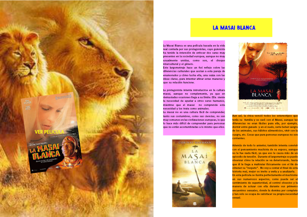 La protagonista intenta introducirse en la cultura masai, aunque no complemente, ya que en demasiadas ocasiones llega a su límite. Ella siente la necesidad de ayudar a otros seres humanos, mientras que el masai no comprende esta necesidad y los trata como animales.