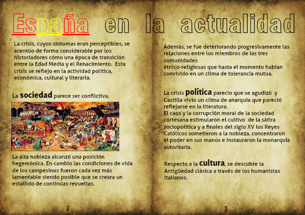 El caos y la corrupción moral de la sociedad cortesana estimularon el cultivo de la sátira sociopolítica y a finales del siglo XV los Reyes Católicos sometieron a la nobleza, concentraron el poder en sus manos e instauraron la monarquía autoritaria.