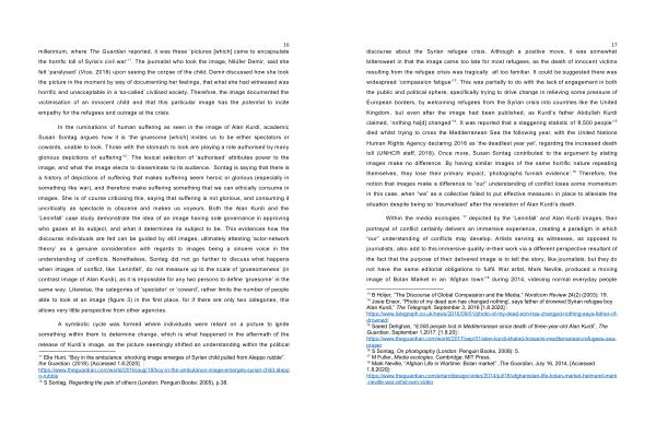 the horrific toll of Syria ’ s civil war ’ 11 . The journalist who took the image , Nilüfer Demir , said she felt ‘ paralysed ’ ( Vice , 2018 ) upon seeing the corpse of the child . Demir discussed how she took the picture in the moment by way of documenting her feelings , that what she had witnessed was horrific and unacceptable in a ‘ so-called ’ civilised society . Therefore , the image documented the victimisation of an innocent child and that this particular image has the potential to incite empathy for the refugees and outrage at the crisis .