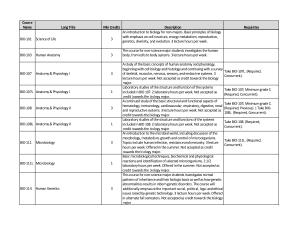 108L . ( Required , Concurrent ). credit towards the biology major . Laboratory studies of the structure and functions of the systems included in BIO 108 . 2 laboratory hours per week . Not accepted as credit towards the biology major An introduction to the microbial world , including discussion of the morphology , metabolism , growth and control of microorganisms . Topics include human infection , resistance and immunity . 3 lecture hours per week . Offered in the summer . Not accepted as credit towards the biology major . Basic microbiological techniques , biochemical and physiological reactions and identification of selected microorganisms . 2 1 / 2 laboratory hours per week . Offered in the summer . Not accepted as credit towards the biology major . This course for non-science-major students investigates normal patterns of inheritance and their biologic basis as well as how genetic abnormalities results in inborn genetic disorders . The course will additionally emphasize the important social , political , legal and ethical issues raised by genetic technology . 3 lecture hours per week . Offered in alternate fall semesters . Not accepted as credit towards the biology major