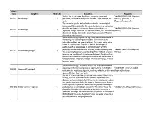 Advanced Physiology II is a continuation of the study of homeostatic regulatory mechanisms using selected organ systems , including the Take BIO-317 ; Minimum grade C . cardiovascular , respiratory , digestive , renal , reproductive , and immune ( Required , Previous ). systems . 3 lecture hours per week . The first of a three-part biology capstone course series . The capstone course ( s ) help the student to reflect upon how expertise in their discipline has been integrated with the university mission , core values and learning outcomes during the course of their education . Students will be exposed to options for their future and prepare for their postgraduate plans as well as begin research for their senior thesis . The Take 60 credits . ( Required , Previous ). class will additionally initiate a service project to be completed by graduation and begin the compilation of a portfolio to be submitted in the third capstone course . 1 conference hour per week . Junior status required . Offered in the spring semester .