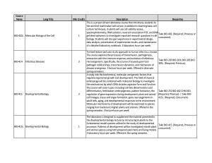 305L . ( Required , Previous ). disease emergence . 3 lecture hours per week . Offered in alternate spring semesters . A study into the biochemical , molecular and genetic factors that regulate organismal growth and development . The field of classical embryology will be combined with molecular biology to investigate the mechanisms by which DNA dictates organism form and function . The course will cover topics including cell fate determination and differentiation , fertilization , embryogenesis , pattern formation , the regulation of gene expression during development , plant and animal cell lineages , tissue and organ formation , gene rearrangements in adult cells , aging , and developmental responses to the environment . Molecular mechanisms of development will be examined in species ranging from bacteria to higher plants and animals . Offered in the spring semester . 3 lecture hours per week .