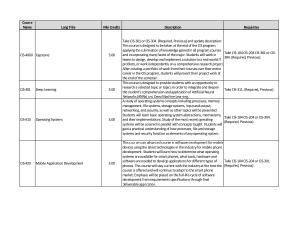 Take CIS-311 . ( Required , Previous ). the student ' s comprehension and application of Artificial Neural Networks ( ANNs ) and Deep Machine Learning . A study of operating systems concepts including processes , memory management , file systems , storage systems , input and output , networking , and security , as well as other topics will be presented . Students will learn basic operating system abstractions , mechanisms , and their implementations . Study of the most recent operating systems will be covered in parallel with concepts taught . Students will gain a practical understanding of how processes , file and storage systems and security function as elements of any operating system .