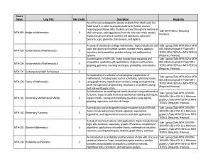 Take 1 group ( Take MTH-103 MTH- 104 MTH-136 or PSY-111 ; Minimum grade D- / Take MTH-TESTL4 or MTH- TESTL5 ). ( Required , Previous ).