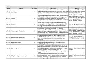 104 MTH-136 or PSY-111 ; Minimum Students will create programs using Python to solve computationally grade D- / Take MTH-TESTL4 or MTHdifficult problems and to analyze mathematical models of real-world