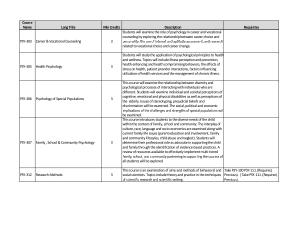 This course will examine the relationship between diversity and psychological processes of interacting with individuals who are different . Students will examine individual and societal perceptions of cognitive , emotional and physical disabilities as well as perceptions of the elderly . Issues of stereotyping , prejudicial beliefs and discrimination will be examined . The social , political and economic implications of the challenges and strengths of special populations will be examined . This course introduces students to the diverse needs of the child within the context of family , school and community . The interplay of culture , race , language and socio-economics are examined along with current family life issues ( parent education and involvement , family and community lifestyles , child abuse and neglect ). Students will determine their professional role as advocate in supporting the child and family through the identification of evidence-based practices . A review of resources available to effectively implement multi-tiered family , school , and community partnering in supporting the success of all students will be explored .
