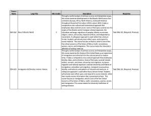 Through a careful analysis of primary sources and interpretive essays , this course examines the history of the United States as an experience of immigration and ethnicity from the colonial period to modern times . It takes a comparative cross-cultural approach that emphasizes identity , ideas , and institutions . Some of the topics covered include : settlers , servants , and slaves ; citizenship and migration ; European migration and national expansion ; national citizenship and federal of immigration ; colonialism and migration ; immigrant incorporation , identity , and nativism ; and patterns of inclusion and exclusion . A colloquium approach is used rather than a lecture format . Students will actively read , reflect upon , and respond to course material , rather than merely receive information that is presented to them . This course focuses on immigration , which is one of the five Critical Concerns of the Sisters of Mercy : earth ; nonviolence , women , racism , and immigration . This course meets the University ' s definition of writing intensive . |