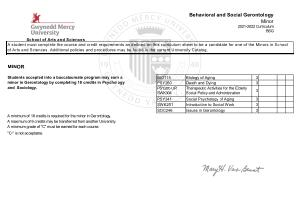 Students accepted into a baccalaureate program may earn a minor in Gerontology by completing 18 credits in Psychology and Sociology .