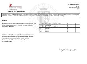 A student must complete the course and credit requirements as defined on this curriculum sheet to be a candidate for one of the Minors in School of Arts and Sciences . Additional policies and procedures may be found in the current University Catalog .