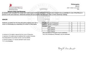 School of Arts and Sciences A student must complete the course and credit requirements as defined on this curriculum sheet to be a candidate for one of the Minors in