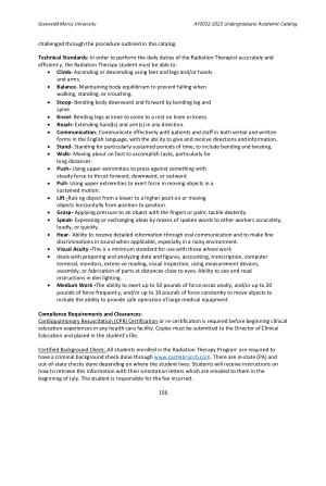 Technical Standards : In order to perform the daily duties of the Radiation Therapist accurately and efficiently , the Radiation Therapy student must be able to :