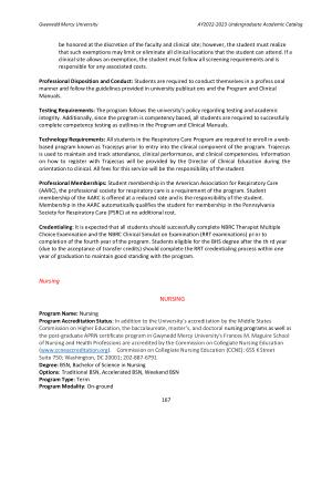 Professional Disposition and Conduct : Students are required to conduct themselves in a professional manner and follow the guidelines provided in university publications and the Program and Clinical Manuals .