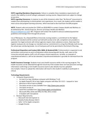Use of Marijuana : As a Gwynedd Mercy University nursing student , a commitment to the highest professional standard and the contract we hold with society to be safe , competent care providers is expected . Our legal contracts with clinical agencies require clean substance screens . State laws that legalize marijuana do not change our standard and our commitment to a drug-free lifestyle , both during the school year and during breaks . Use of marijuana will not be permitted in the School of Nursing .