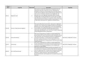 This course is a study of the many facets of organized crime . The theoretical explanations behind the creation and operation of organized crime groups , and the perpetuation of this phenomenon , will be examined . Moreover , their activities and the ramifications of their business transactions will be discussed . Additionally , the |