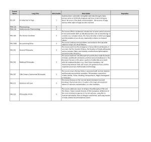 This course offers a systematic introduction to some central concerns of men and women both as individual persons and as social beings . It considers our complex nature , the many activities in which we engage and the problem of our destiny , especially in relation to God and nature . This course analyzes moral problems and evaluates their possible solutions in light of ethical theories . This course examines the emergence of Greco-Roman philosophy . It can cover the Pre- Socratic thinkers , the founders of Greek philosophy such as Socrates , Plato , and Aristotle , and the Roman philosophers and ancient Neo-Platonists . This course examines the philosophical contributions made by Jewish , Christian , and Muslim scholastics and their ancient predecessors . The discussion focuses on the preoccupations traditionally associated with the medieval thinkers , e . g ., God , Divine revelation , the relationship between faith and reason , the problem of evil , and the respective provinces of philosophy and theology .