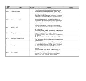 The literature of Johannine Christianity , which includes a gospel , three letters and an apocalyptic work , is the primary subject matter of this course . Comparisons and contracts with the Synoptic tradition are also examined . The gospels of Mathew and Mark and the two-part work consisting of the gospel of Luke and Acts of the Apostles , provide the primary subject matter of the course . The Synoptic Problem of interdependence and the primary emphases of the Synoptic tradition are examined . The three monotheistic religions , Judaism , Christianity and Islam , offer rich and varied approaches to prayer . The basic beliefs of these three major religions are examined in light of their unique approaches to prayer practices . Because the prophetic literature of the Old Testament is so vast , this more specialized course treats biblical prophecy in detail . A survey of the books of the major and Minor Prophets forms the foundation of the course . Biblical prophecy and its relationship to messianic expectations are explored , as is the recurring issues of false vs . true prophets . This course provides students with a scriptural , theological and spiritual base from which to examine contemporary social issues . Particular emphasis is given to the place of compassion in one ' s everyday life , such as organ donation . Contemporary topics of euthanasia and genetic engineering are also examined .