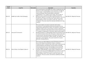 This course focuses on the Middle East conflict in exploring issues and dynamics of exile and belonging in Israel and Palestine through the lens of religion . In exploring these issues and dynamics , we will examine alternative ideas and perceptions , particularly , contemplation of non- violence in this conflict . This will open up |