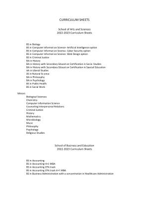 School of Business and Education 2022-2023 Curriculum Sheets