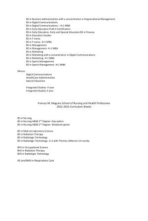 Frances M . Maguire School of Nursing and Health Professions 2022-2023 Curriculum Sheets
