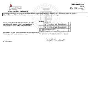 A student must complete the course and credit requirements as defined on this curriculum sheet to be a candidate for one of the Minors in School of Education . Additional policies and procedures may be found in the current University Catalog .