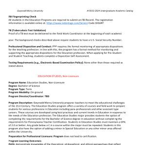 Program Name : Education Studies , Non-Licensure Degree : Bachelor of Science Program Type : Term Program Modality : On-ground
