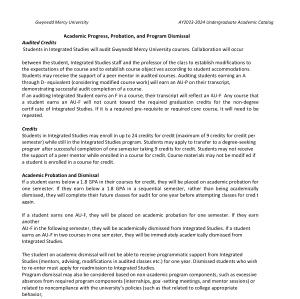 between the student , Integrated Studies staff and the professor of the class to establish modifications to the expectations of the course and to establish course objectives according to student accommodations . Students may receive the support of a peer mentor in audited courses . Auditing students earning an A through D- equivalent ( considering modified course work ) will earn an AU-P on their transcript , demonstrating successful audit completion of a course . If an auditing Integrated Student earns an F in a course , their transcript will reflect an AU-F . Any course that a student earns an AU-F will not count toward the required graduation credits for the non-degree certificate of Integrated Studies . If it is a required pre-requisite or required core course , it will need to be repeated .