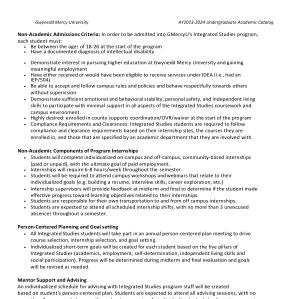 Non-Academic Admissions Criteria : In order to be admitted into GMercyU ' s Integrated Studies program ,