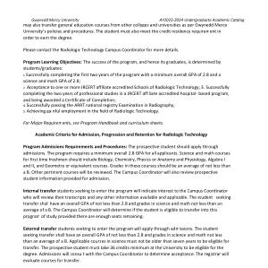 For Major Requirements , see Program Handbook and curriculum sheets . Academic Criteria for Admission , Progression and Retention for Radiologic Technology