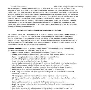 Technical Standards : In order to perform the daily duties of the Radiation Therapist accurately and efficiently , the Radiation Therapy student must be able to :