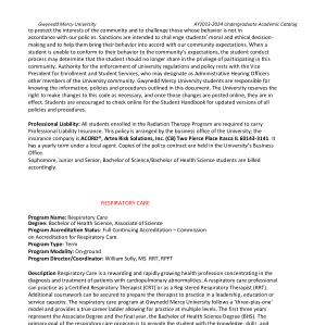 RESPIRATORY CARE Program Name : Respiratory Care Degree : Bachelor of Health Science , Associate of Science Program Accreditation Status : Full Continuing Accreditation – Commission on Accreditation for Respiratory Care Program Type : Term Program Modality : On-ground Program Director / Coordinator : William Solly , MS , RRT , RPFT