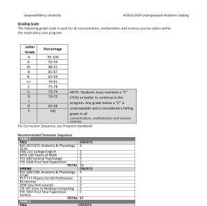 Grading Scale The following grade scale is used for all concentration , mathematics and science courses taken within the respiratory care program :
