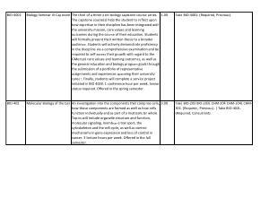 Biology Seminar III-Capstone The third of a three-part biology capstone course series . The capstone course ( s ) help the student to reflect upon how expertise in their discipline has been integrated with the university mission , core values and learning outcomes during the course of their education . Students will formally present their written thesis to a broader audience . Students will actively demonstrate proficiency in the discipline via a comprehensive examination and be required to self-assess their growth with regard to the GMercyU core values and learning outcomes , as well as the general education and biology program goals through the submission of a portfolio of representative assignments and experiences spanning their university career . Finally , students will complete a service project initiated in BIO 4000 . 1 conference hour per week . Senior status required . Offered in the spring semester . |