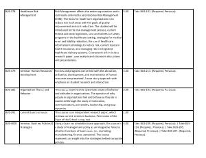 Risk Management affects the entire organization and is commonly referred to as Enterprise Risk Management ( ERM ). The focus for healthcare organizations is to reduce risk in all areas with the goals of quality improvement and cost reduction . The student will be introduced to the risk management process , current federal and state legislation , cost and benefits of safety programs in the healthcare setting , strategies for medical error and liability reduction , the use of healthcare information technology to reduce risk , current topics in health insurance , and managing risk in integrated healthcare delivery systems . Coursework will include a research paper , case analysis and classroom discussions and presentations .