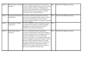 The course emphasizes the basic mathematical competencies identified by the Pennsylvania Academic Standards for Mathematics and the National Council of Teachers of Mathematics critical to mathematics instruction for middle s c h o o l teaching . Students will learn the pedagogical methods and strategies combined with the essential mathematical theories of number operations , algebra , geometry , fractions , data analysis , probability and statistics through demonstrations , collaborative learning , modeling and field experience . This course is intended for the junior level . |