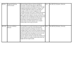 The foundation of successful marketing must begin with a consumer-first model . This course will introduce concepts developed in psychology , economics , and sociology as they relate to consumer and buyer behavior . Students will explore the consumer decision process and behavior models while evaluating the sociocultural and environmental influences that impact purchasing decisions . Students will then translate these findings into efforts marketers can employ to build relationships and engage with their target market .