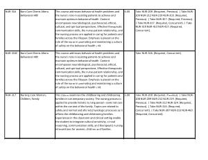 4.00 Take NUR-209 . ( Required , Previous ). | Take NUR- 209 NUR-212 NUR-219 NUR-208 . ( Required , Previous ). | Take NUR-307 . ( Required , Previous ). | Take NUR-317 . ( Required , Concurrent ). | Take NUR-319 NUR-413 NUR-417 . ( Required , Concurrent ). |