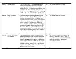 3.00 Take NUR-209 NUR-212 NUR-324 . ( Required , Previous ). | Take NUR-313 NUR-319 NUR-423 . ( Required , Previous ). | Take NUR-307 NUR-317 . ( Required , Concurrent ). | Take NUR-417 . ( Required , Concurrent ). |