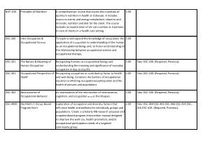 Recognizing humans as occupational beings and understanding the meaning and significance of everyday occupation in day-to-day life . Recognizing occupation as contributing factor to health and well-being . Considers the barriers of occupational injustice to effecting occupational participation and the health of persons and populations . |