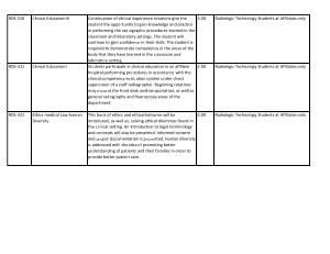 Continuation of clinical experience rotations give the student the opportunity to gain knowledge and practice in performing the radiographic procedures learned in the classroom and laboratory settings . The student will continue to gain confidence in their skills . The student is required to demonstrate competency in the areas of the body that they have learned in the classroom and laboratory setting . |
