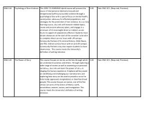 This SERVICE LEARNING hybrid course will present the issues of interpersonal ( domestic / sexual ) and intrapersonal ( self-injury / suicide ) violence through a psychological lens with a special focus on mental health , social justice , advocacy for affected populations , and strategies for the promotion of non-violence . As a servicelearning course , students will research related topics , create and present advocacy plans , and engage in a minimum of 12 meaningful direct or indirect service hours in support of populations affected . Students must obtain clearances at the start of the semester to be able to complete direct service hours with off-campus Community Partners ( PA criminal History , Child Abuse , and FBI ). Indirect service hours with on and off-campus Community Partners may also require students to have clearnances . This course meets the University ' s definition of writing intensive . |