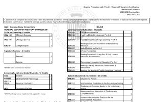 Special Education Concentration - 33 credits |