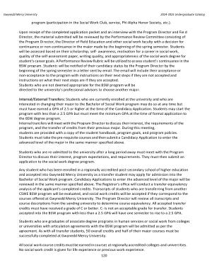 2024-2025 Undergraduate Catalog program ( participation in the Social Work Club , service , Phi Alpha Honor Society , etc .).