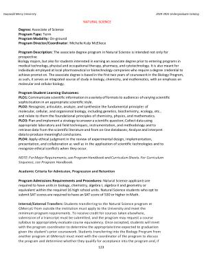 Internal / External Transfers : Students transferring to the Natural Science program at GMercyU from outside the institution must apply to the University and meet the minimum program requirements . To receive credit for courses taken elsewhere , submission of a transcript must be submitted , and the program may request a course syllabus to appropriately evaluate course equivalency . Once accepted , students will meet with the program coordinator to determine the appropriate time expected to graduation given the student ’ s prior coursework . Students transferring into the Biology Program from another program at GMercyU must meet with the coordinator of the program to discuss the program and determine whether they qualify for acceptance into the program and , if