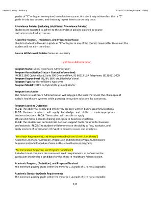 " For Curriculum Sequence , see Program Handbook ") A student must complete the course and credit requirements as defined on the curriculum sheet to be a candidate for the Minor in Healthcare Administration .