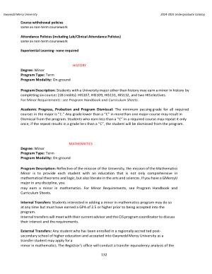 Program Description : Students with a University major other than history may earn a minor in history by completing six courses ( 18 credits ): HIS107 , HIS109 , HIS131 , HIS132 , and two HIS electives . For Minor Requirements : see Program Handbook and Curriculum Sheets .