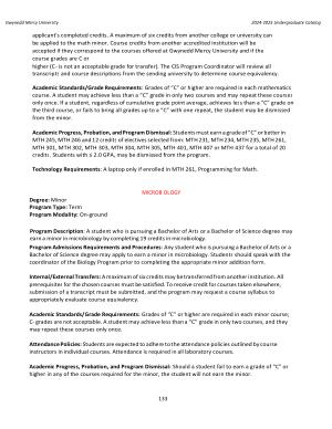 applicant ' s completed credits . A maximum of six credits from another college or university can be applied to the math minor . Course credits from another accredited institution will be accepted if they correspond to the courses offered at Gwynedd Mercy University and if the course grades are C or higher ( C- is not an acceptable grade for transfer ). The CIS Program Coordinator will review all transcripts and course descriptions from the sending university to determine course equivalency .